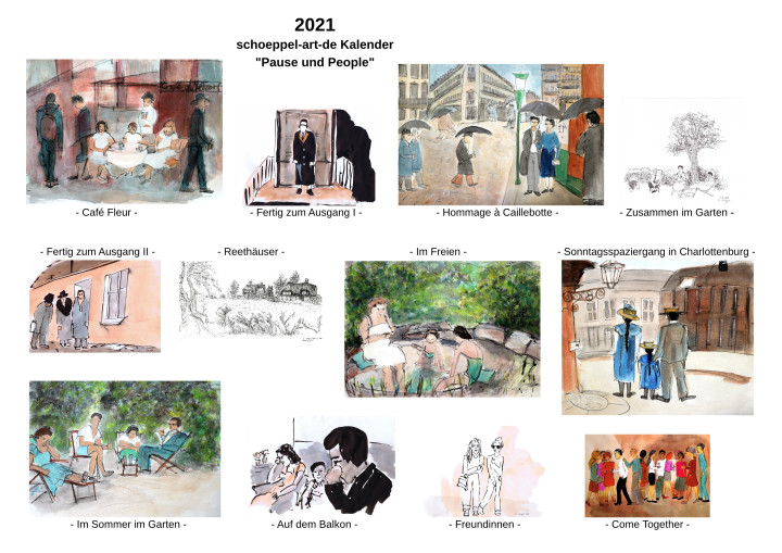 Hier die Arbeiten, die im neuen Kalender www.schoeppel-art.de 2023 mit dem Arbeitstitel: Zeichnung - Mit und Ohne Farbe enthalten sein werden. Er zeigt eine abwechslungsreiche Mischung: Ernstes, Nachdenkliches, Entspanntes und Heiteres. Alle Arbeiten sind in diesem Jahr entstanden.