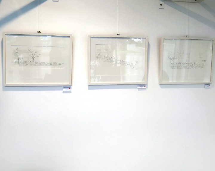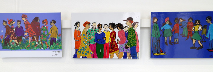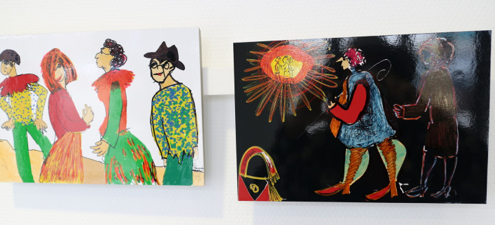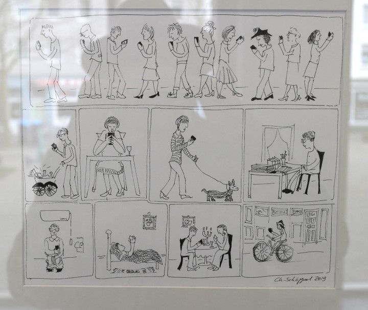 Tablet Finger Drawings, weitere Zeichnungen und Mischtechniken von mir sind weiterhin im Cafe zu sehen. Einige Bilder beziehen sich thematisch auf die Cafe-Situation, Menschen sitzen gemütlich beisammen. Kaffee und Anderes, Kommunikation, Kunst und Speisen.