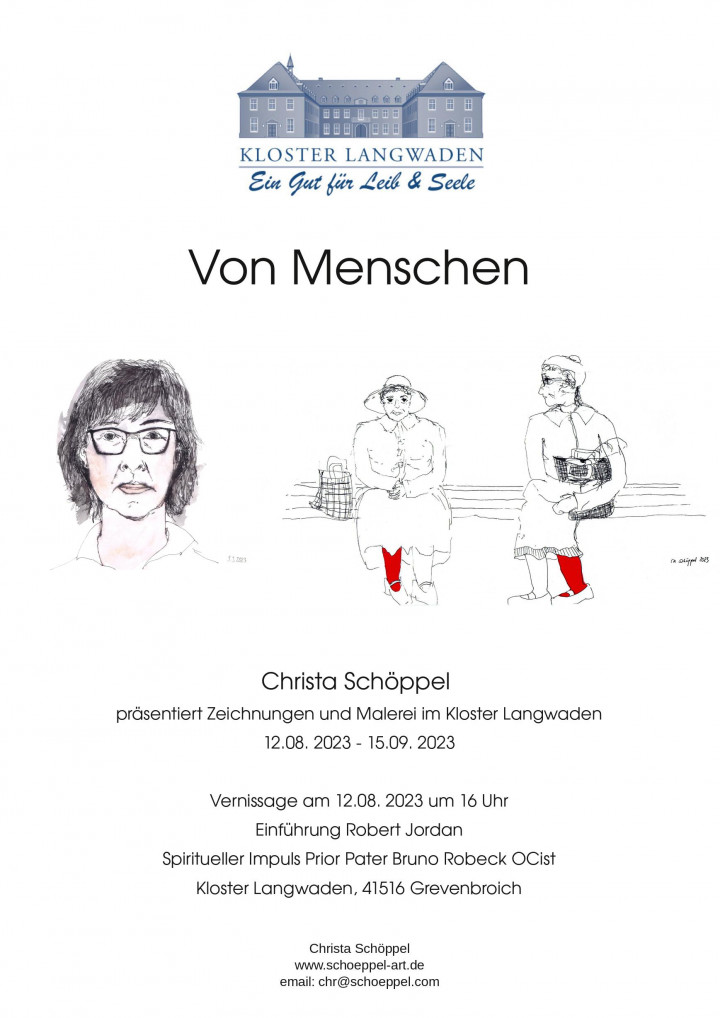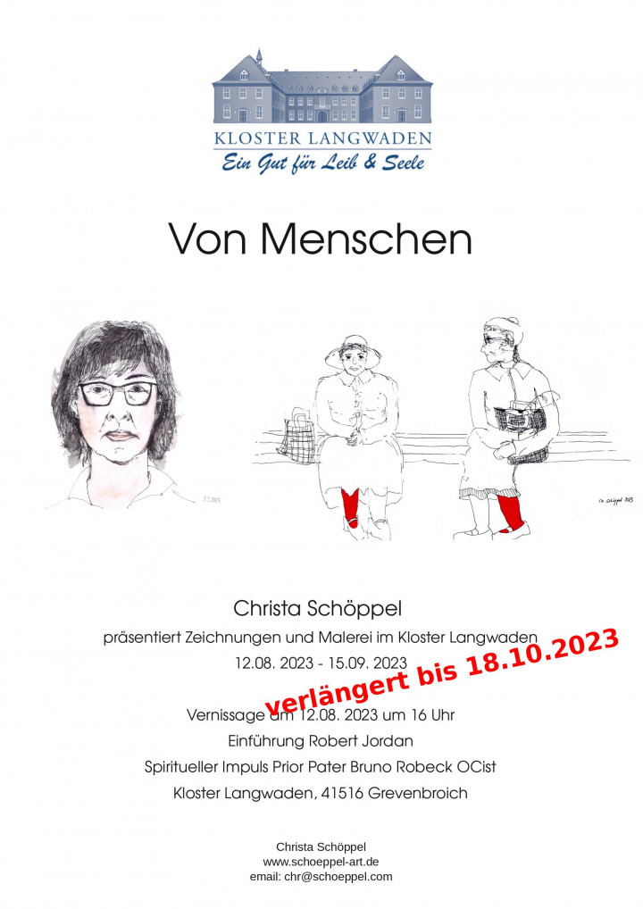 Ich freue mich, bekanntzugeben, dass meine Ausstellung VON MENSCHEN im Kloster Langwaden, Grevenbroich bis zum 18.10. 2023 verlängert wurde.