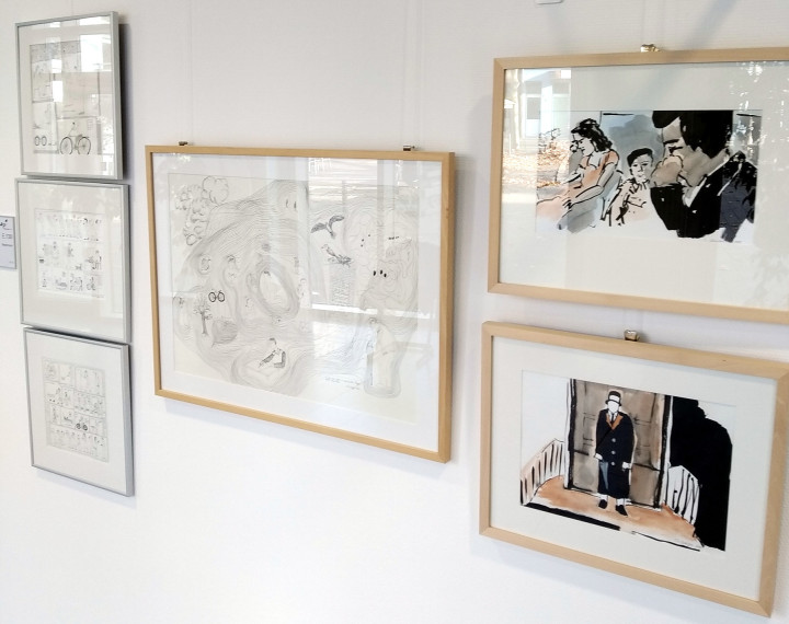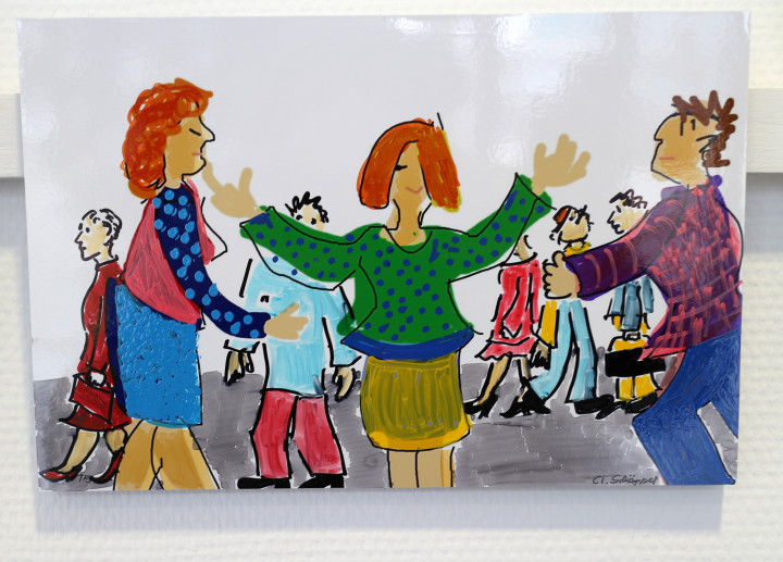 Tablet Finger Drawings, weitere Zeichnungen und Mischtechniken von mir sind weiterhin im Cafe zu sehen. Einige Bilder beziehen sich thematisch auf die Cafe-Situation, Menschen sitzen gemütlich beisammen. Kaffee und Anderes, Kommunikation, Kunst und Speisen.